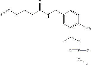PC (Photo-Cleavable) Spacer can be placed between DNA bases or between the oligo and a 5'-modifier group. It offers a 10-atom spacer arm which can be cleaved with exposure to UV light in the 300-350 nm spectral range. Cleavage releases the oligo with a 5'-phosphate group.